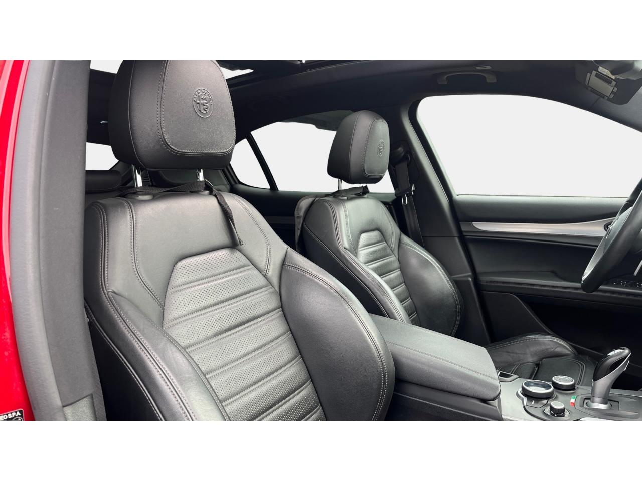 2 prises USB AR8 haut-parleursAttelage démontable sans outilsAir conditionné automatique bi-zone avec aérateurs aux places arrièreApple CarPlay / Google Android AutoAvertisseur de dépassement de ligne blanche (LDW)Banquette arrière rabattable 40/20/40Bouton de démarrageCartographie EuropeChrome Line (encadrement des vitres chromé)Double sortie d'échappementEssuie-glaces avant automatique avec détecteur de pluie et allumage automatique des feuxFeux arrière à LEDFrein de parking électroniqueFreinage d'urgence autonome (AEB)Hayon arrière motorisé avec mémorisation de la hauteur d'ouvertureInserts de planche de bord, tunnel central avant et portières en bois chêne foncéKit “Fix&Go”Pack Driver Assistance PlusPack EclairagePack HiverPeinture pastel Rouge AlfaPrise USB avantRadars de stationnement arrièreRéglage lombaire électrique à 4 positionsRégulateur de vitesse adaptatif (ACC)Rétroviseurs extérieurs rabattables électriquementRotary PadSélecteur de mode de conduite Alfa DNASellerie cuir Pieno FioreSeuils des portes en aluminiumSièges AV électriques à 8 positions et mémorisablesSystème d'aide à la descenteSystème d'alerte anti-collisions (FWC) avec détection piétonsSystème de freins integré (IBS)Système Stop & StartTapis de sol noirVolant cuir multifonctionVolant en cuir Luxury