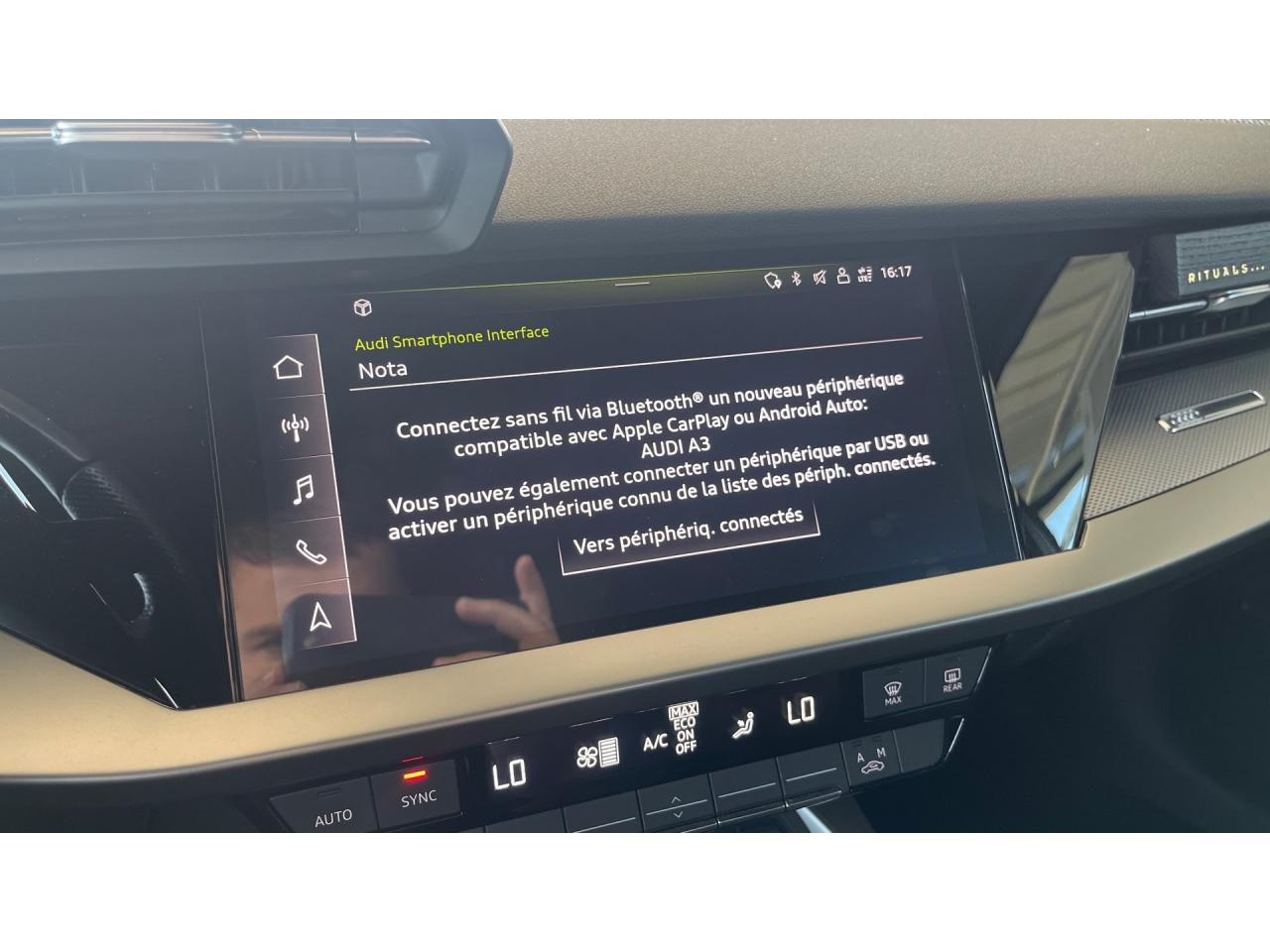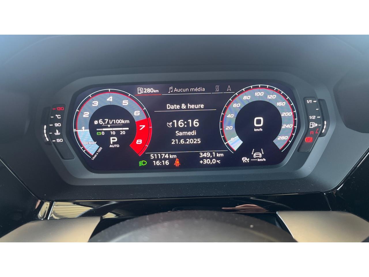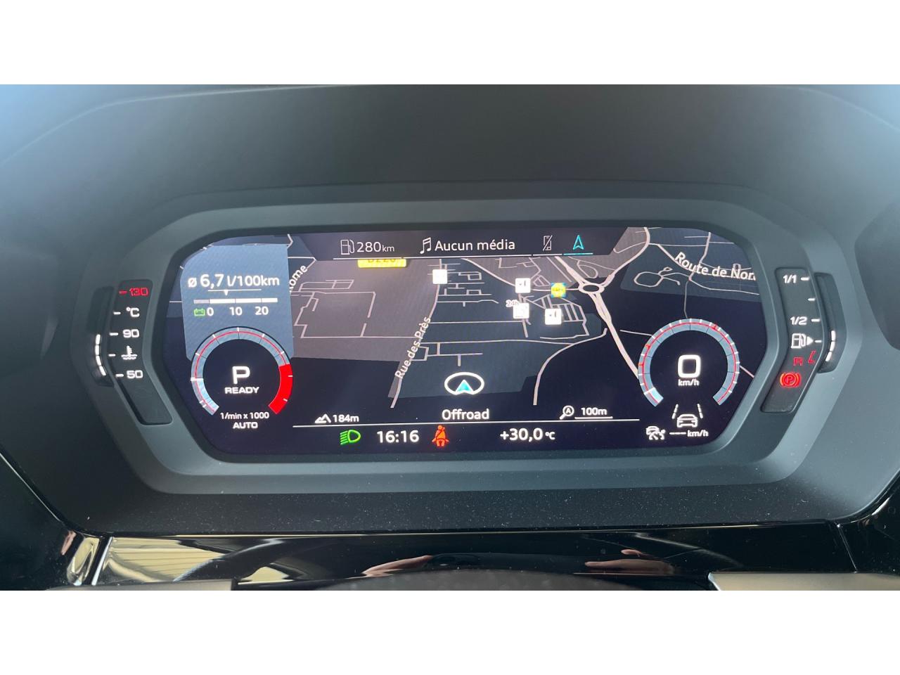 2 prises USB à l'arrièreAirbags latéraux à l'avant et système d'airbags de têteAppel d’urgence Audi connectApplications décoratives en aluminium spectre foncéAudi connect Appel d’urgence & ServiceAudi connect navigation et divertissement en combinaison avec MMI navigation plus avec MMI touchAudi Drive SelectAudi Park AssistAudi pre sense frontAudi smartphone interfaceAudi sound system : 10 haut-parleurs incluant un haut-parleur central et un subwoofer ; amplificateur à 6 canaux avec une puissance totale de 180 wattsAudi virtual cockpit : combiné d'instruments entièrement numérique de 10,25"Avertissement de sortie de voieBanquette arrière rabattable 40/60Caméra de reculCiel de pavillon en tissu noirClé à fréquence radio (sans safelock)Climatisation automatique confort 2 zonesCommande de désactivation d'airbag passager avantContrôle de la pression des pneumatiquesDétecteur de pluie et allumage automatique des projecteursDirection assistée électromécanique asservie à la vitesseEcrous antivolI-Size et Top Tether pour les sièges arrière extérieursInterface BluetoothJantes en alliage léger, 5 branches en Y, Gris Graphite, tournées brillantes, dimension 8,0J x 18 avec pneus 225/40 R18Kit anticrevaison (compresseur et produit de colmatage)Limiteur de vitesseMMI navigation plus avec MMI touchOutillage de bordPack Eclairage intérieurPack Extérieur S linePack Intérieur S linePalettes de commande au volantPare-brise avec isolation acoustiquePeinture verniePhares à LED avec clignotants dynamiques à l’arrièreRappel de ceinture de sécurité avec dispositif arrière de détection d’occupation du siègeRéception radio numérique (DAB)Régulateur de vitesseRétroviseur intérieur à position nuit automatique, sans encadrementRétroviseurs extérieurs couleur carrosserieRétroviseurs extérieurs réglables, dégivrants, rabattables électriquement avec fonction rabat automatique (côté passager avant, marche arrière enclenchée) et fonction jour/nuit automatique des deux côtésSécurité enfant électriqueSièges avant réglables manuellementTrousse de secours, triangle de présignalisation et 2 vestes de sécurité