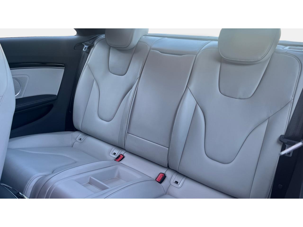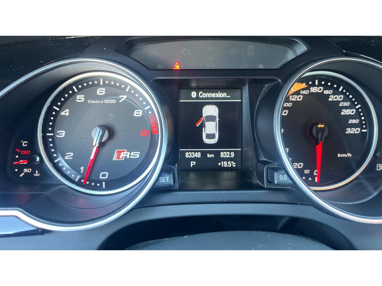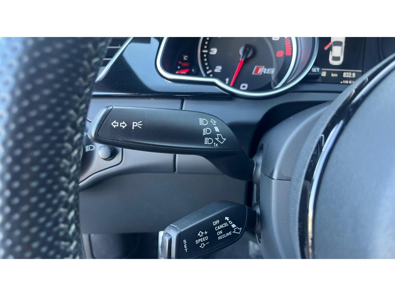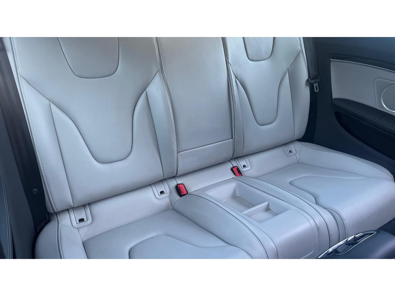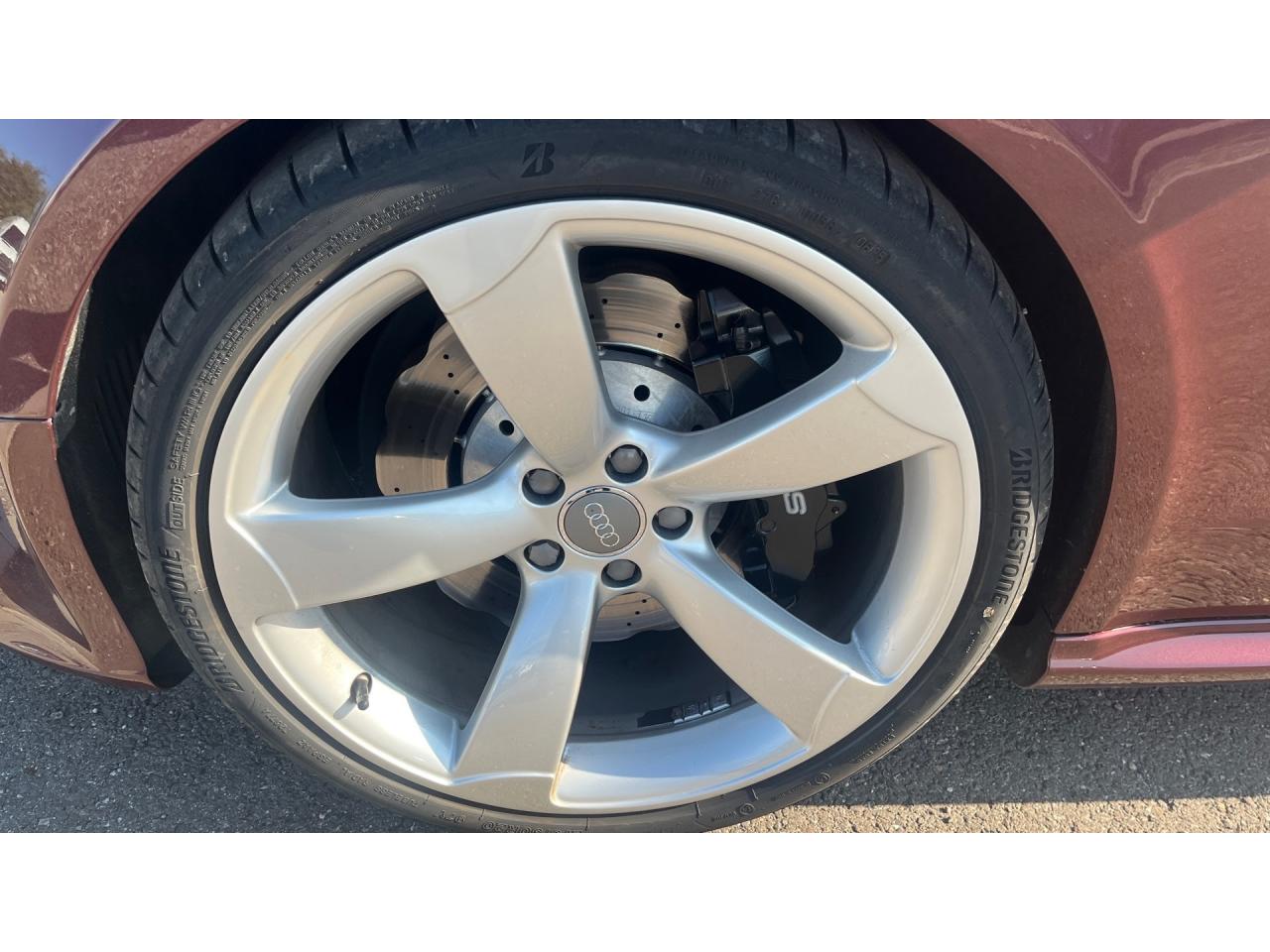 4 œilletons de fixation dans le coffre, pour maintenir les bagages et objets ; points d'accrochage pour le filet mixteAccoudoir central avant avec vide-pochesAccoudoir central dans le dossier des sièges arrière, rabattable ; compartiment avec trousse de secoursAccoudoirs de portières avant et accoudoirs arrière garnis de cuir de la couleur de la sellerieAdvanced Key : système d'autorisation d'accès et de démarrage main libreAirbags grand volume pour conducteur et passager avant avec détecteur de la position d'assise ; airbag adaptatif pour le conducteur et passager avantAirbags latéraux (airbag thorax et bassin à l'avant)Alarme antivol (surveille l'habitacle, autoradio, portes, capot moteur et de coffre, inclut protection antiremorquage)Alarme antivol avec fonction safelockAllume-cigare intégré dans le cendrierAntipatinage ASR pour une motricité optimale, empêche le patinage des roues motricesApplications décoratives en carbone sur contre-portes et console centraleApplications spécifiques en piano laqué noir autour de l'instrumentation et de l'écran du MMIAppuie-têtes intégrés à l'avant et à l'arrièreAudi Drive SelectAudi Hold Assist : système désactivable maintenant le véhicule à l'arrêt en descente comme en côte; permet un redémarrage confortable sans mettre le frein à mainAudi Premium Tracking System : système de localisation et d'immobilisation par satellite couplé à l'alarme antivolAvertisseur deux tons avec commande au centre du volantBlocage électronique de différentiel EDS, aide au démarrage intervenant jusqu'à une vitesse d'environ 100 km/h, freinant automatiquement les roues motrices sur route glissante et inégalement adhérenteBoîte automatique S tronic 7 vitesses à double embrayage, passage en mode manuel possible à l'aide du sélecteur ou des palettes situées derrière le volantBouclier avant avec larges prises d'air en structure nid d'abeilles, avec double baguette horizontale et lame de bas de bouclier anthracite brillantes ; bouclier arrière avec diffuseur en structure nid d'abeilles, sorties d'échappement intégrées et lamCalandre Singleframe : grille anthracite brillante en structure nid d'abeilles et cadre en aluminium matCapot de coffre à ouverture automatique, lors du déverrouillage du coffre par la télécommande ou par actionnement de la touche douce sur le capot du coffre Fermeture manuelleCarrosserie galvaniséeCeintures de sécurité, automatiques à 3 points pour les 4 places, contrôle de port de ceinture à l'avant, couleur assortie à celle de l'habitacleCendrier sur la console centrale à l'avant et à l'arrièreChâssis Sport RS avec suspension et amortisseurs plus fermes pour un contact plus direct avec la chaussée et une conduite sportiveCiel de pavillon en tissu noir ou Argent lunaire au choixClimatisation automatique Confort 3 zones à fonctionnalités étendues et affichage numériqueColonne de direction de sécuritéContact d'allumage électronique ; clé de contact pouvant mémoriser différentes données d'entretienContrôle de pression des pneus : vérifie durant la marche la pression de chacune des rouesContrôle électronique de stabilisation ESC, relie ABS, ASR et EDS à ses propres capteurs et compare les données de conduite avec les données de référenceCric, rangé dans le coffreDésactivation de l'airbag passager (désactive aussi l'airbag latéral passager)Détecteur de pluie et allumage automatique des projecteursDossier des sièges arrière rabattable séparément, avec déverrouillage à distance des dossiers depuis le coffreEclairage intérieur à extinction temporisée et contacteurs sur toutes les portièresEcrous antivolEntourage de vitres en aluminium, revêtement noir brillant sur les montants de pavillon centraux et les triangles des portières arrièreÉtriers de freins laqués noir avec logo RSÉtui à lunettes, dans le module d'éclairage intérieur avant, au-dessus du rétroviseur intérieurFrein de stationnement electromécaniqueGPS AdvancedIndicateur d'usure des disques à l'avant, affichage sur le système d'information du conducteurIndicateur de rapport de vitesse dans le système d'information du conducteurIndicateur de température extérieure dans le système d'information du conducteur, en cas de températures inférieures à +5 °C, un cristal de glace apparaît sur l'afficheur, avertissant de la possibilité de verglasInscriptions RS 5 sur les seuils de portes, la calandre, la malle de coffre, le volant, le levier de vitesses S tronic, le compte-tours et la cléInstrumentation à éclairage réglable, tachymètre électronique avec compteur kilométrique totalisateur et journalier, compte-tours, horloge, indicateur de température du liquide de refroidissement et jauge de carburantJantes en aluminium forgé style 10 branches fines, 9 J x 19”, avec pneus 265/35 R19Lave-glace, deux vitesses, 4 réglages d'intermittence, balayage coup par coup et lavage-balayage automatiqueLecteur DVDLève-vitres avant électriques avec protection antipincement et fonction confort d'ouverture/fermeture par impulsion ; vitres arrière fixesLimiteurs d'effort des ceintures de sécurité avantLunette arrière dégivrante avec minuterieMoulures de seuils de portes avec insert en aluminium badgé RS 5Ordinateur de bord couleur et système de contrôle autocheck (incluant programme efficiency)Outillage de bord dans le coffrePack EclairageParking System PlusPédalier et repose-pied style aluminiumPoignées de maintien, amorties, rabattables dans les deux sens encastrées dans le ciel de pavillonPoignées de portières extérieures laquées dans la couleur de carrosserie, poignées cintrées agréables à utiliserPommeau de levier de vitesses en cuir perforé avec badge RS 5 ; soufflet en cuir avec surpiqûres gris pierrePorte-boissons sur la console centralePréparation ISOFIX pour sièges latéraux arrière et siège passager avantPréparation pour téléphone 2 W bi-bande (D et E), san