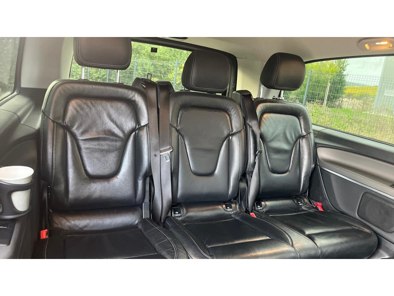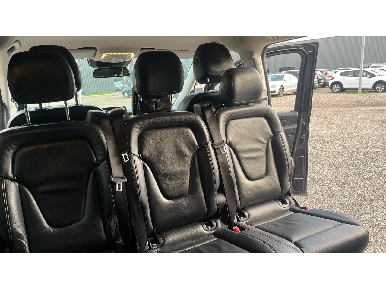 ABS (antiblocage de roues) et BAS (freinage d'urgence assisté)ADAPTIVE BRAKE avec aide au démarrage en côteAirbag frontaux conducteur et passagerAirbags latéraux conducteur et passager avantAirbags rideauxAllumage automatique des projecteursAttelage : pré-équipement électrique pour l'installation ultérieure d'un attelageAttention Assist : système de détection de somnolenceAvertisseur de perte de pression des pneusBoîte à gants verrouillableBoîte de vitesses automatique à 7 rapports 7G-TRONIC PLUS avec fonction "Stop/Start ECO"Calandre à deux lamelles avec étoile intégréeCaméra de recul avec lignes de guidageCapteur de pluieCiel de Pavillon grisClé design avec insert chromé, avec ouverture confortClimatisation TempmaticColonne de direction réglable manuellement en hauteur et en profondeurContacteur AGILITY SELECT offrant le choix parmi quatre modes de conduite en agissant sur la réponse du moteur, de la pédale d'accélérateur et de la transmissionCROSSWIND ASSIST : système de correction de trajectoire en cas de vent latéralEchangeur thermique supplémentaire à l'arrièreESP (régulation de comportement dynamique) avec ASR (antipatinage)Feux de stop adaptatifsFilets de rangement au dos des sièges avantFrein de parking électriqueISOFIX : fixation sièges-enfants arrièreLève-vitres électriques à l'avant avec commande confort et dispositif anti-pincementLevier sélecteur DIRECT SELECT avec palettes de commande au volantNavigation 3D Garmin MAP PILOTPack Avantgarde extérieurPack Avantgarde intérieurPack BlueEFFICIENCYPack d'assistance de trajectoirePack rétroviseursPare-chocs, rétroviseurs et poignées de porte couleur carrosseriePeinture métalliséePorte latérale coulissante droitePrise 12V à l'avantRadio Audio 20 avec écran couleur 17,8 cm (7"), lecteur CD, interface média USB, Aux, connexion BluetoothRétroviseurs extérieurs à réglages électriquesSécurité enfant au(x) porte(s) arrière(s)Sièges avant confort réglables en hauteur avec un accoudoirSièges conducteur et passager avant à réglage lombaireSièges individuels arrière (x4) avec deux accoudoirsSuspension et train de roulement sport ou AGILITY CONTROLSystème de rails pour l'ancrage des siègesTélecommande de verrouillage central et système de fermeture confortTEMPOMAT (régulateur de vitesse) et SPEEDTRONIC (limiteur de vitesse)TOUCHPAD : pavé tactile permettant la navigation dans les menus audio, téléphone et médiaTriangle de pré-signalisationVitres teintées noires : traitement teinté foncé des vitres latérales arrière et de la lunette arrièreVolant multifonction