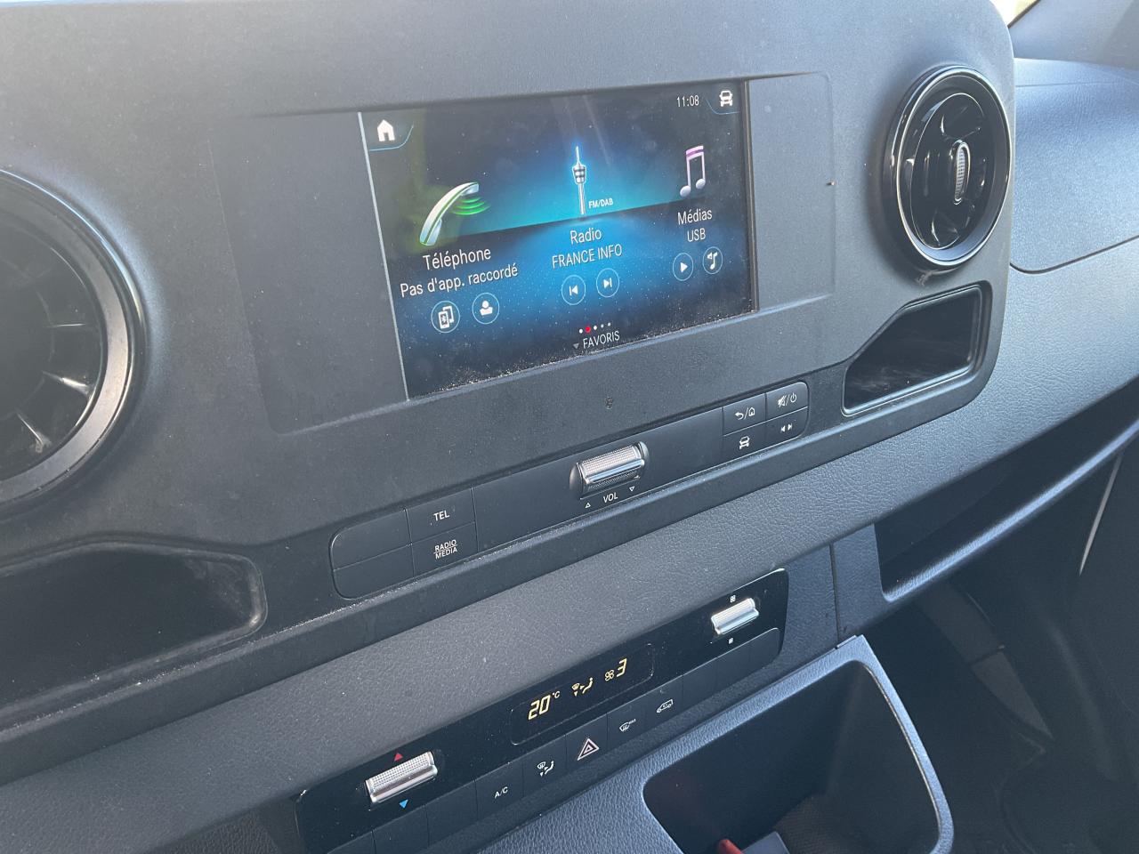 ABS (antiblocage de roues) et ASR (antipatinage)Accoudoir siège conducteurAide au démarrage en côteAirbag conducteurAllumage automatique des pharesAlternateur 14 V / 180 AAssistance en cas de panneAvertisseur d'oubli de ceinture conducteurBanquette passager avant 2 places avec bac de rangementBatterie AGM 12 V / 70 ABoîte mécanique 6 rapports ECO Gear 360Borne auxiliaire pour aide au démarrageCertificat CE de conformité incompletCric HydrauliqueEspace de rangement au-dessus du pavillonFeux de stop adaptatifsHomologation N1Indicateur de température extérieureJantes acier 16 poucesModule de communication (LTE) pour services numériquesPeinture blanc arctiquePlombage du tachymètrePrédisposition faisceau d'attelageRenfort de longeronRéservoir à carburant : 71 litresRéservoir AdBlue 22 litresRétroviseurs à réglages électriques et chauffantsRoue de secoursSellerie Tissu Maturin noirSiège conducteur confort multi-réglagesSupport roue de secours ds porte à faux arrièreSystème audio MB BluetoothSystème d'Appel d'Urgence Mercedes-BenzSystème de stabilisation en cas de vent latéralSystème Stop & StartTachymètre avec graduation en km/hTEMPOMAT (régulateur de vitesse) et SPEEDTRONIC (limiteur de vitesse)Vide-poche au-dessous du tableau de bordVolant multifonctionVolant réglable en hauteur et en profondeur