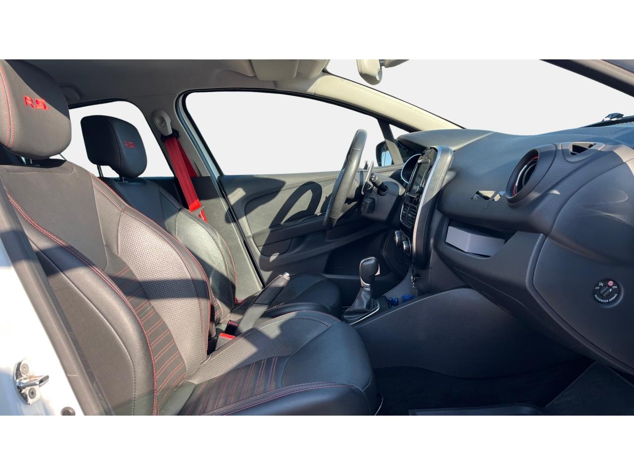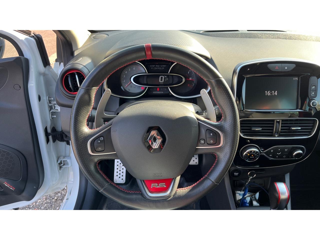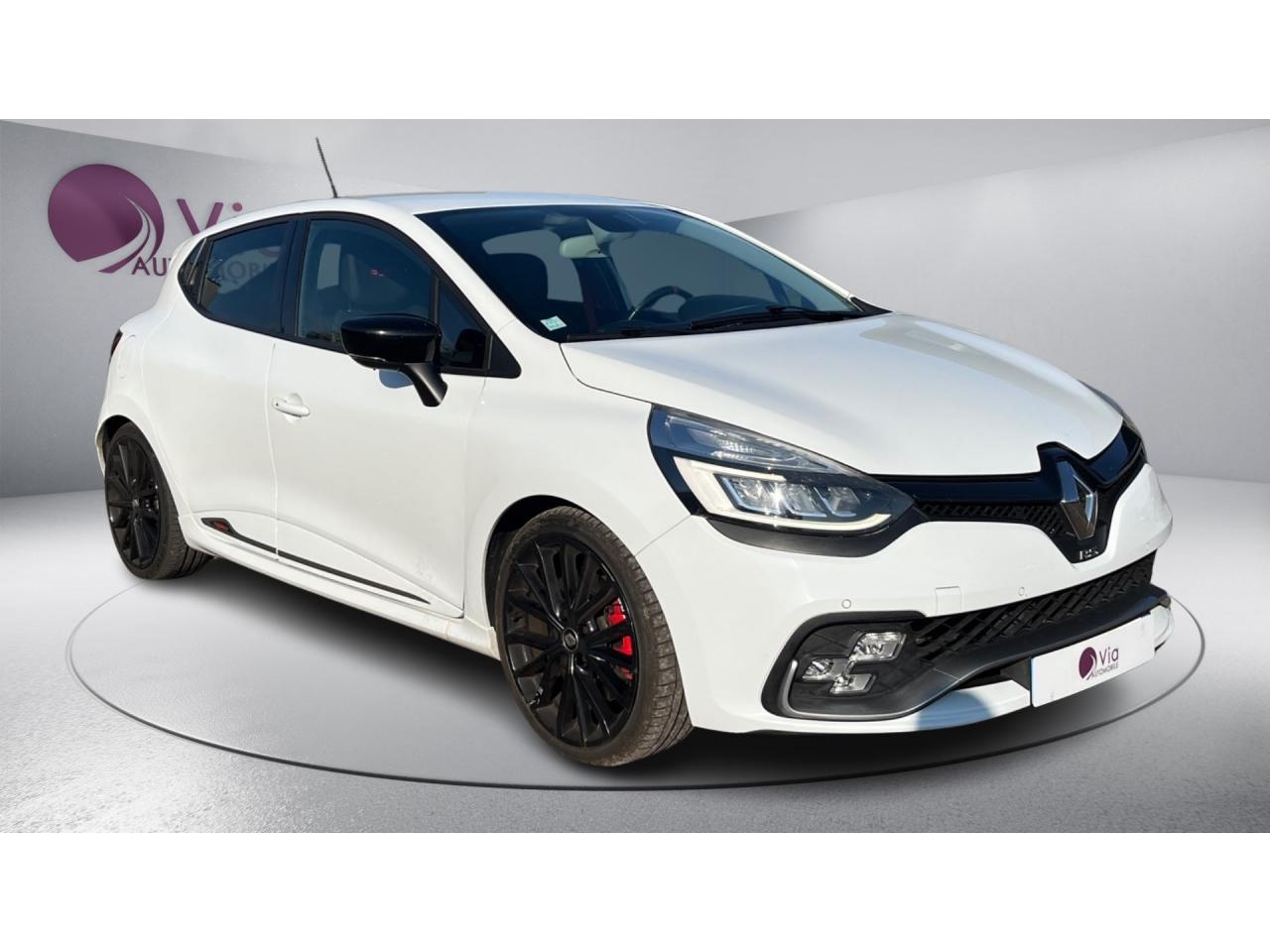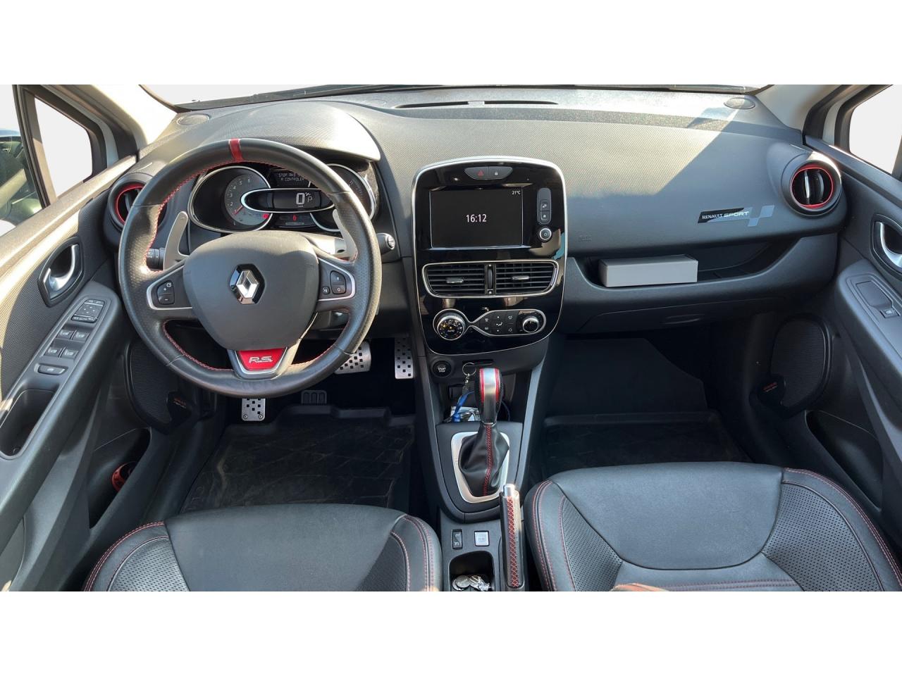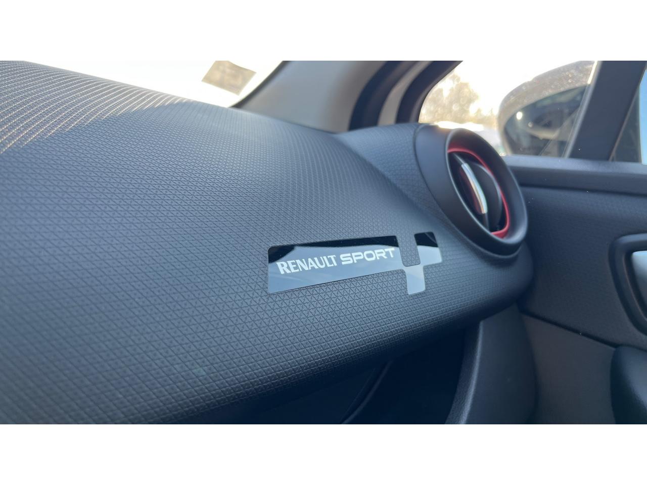 2 appuis-tête avant réglables en hauteur, avec marquage R.SABS avec aide au freinage d'urgenceAide au démarrage en côteAide au stationnement arrièreAirbags frontaux et latéraux conducteur et passager déconnectablesAlerte de ceinture de sécurité conducteur et passagerAnimation intérieure Renault Sport, harmonie Rouge (aérateurs, levier de vitesse, frein à main)Badging « R.S. renault sport » sur bas de hayon arrière droitBadging R.S. sous logo de face avantBaguettes de protection latérale : Ton caisseBanquette arrière rabattable 1/3-2/3 avec 3 appuis-tête réglables en hauteurBas de caisse spécifique (bavolets)Becquet Renault SportBoîte à gants fermable (volume 7 L)Bouclier ton caisse avec lame F1 dark métal brillantButées de compression hydrauliqueCarte Renault avec accès et démarrage mains-libres avec fermeture à l’éloignementCeintures de sécurité rougesChâssis TrophyClimatisation régulée avec filtre combiné pollen / charbon actifCondamnation automatique des ouvrants en roulantCoques de rétroviseurs noir grand brillantDétecteur de pluie et allumage automatique des projecteursDifférentiel électronique R.S. DiffDiffuseur arrière dark métal brillantDirection assistée électrique à assistance variableDouble canule d'échappement Carbone badgée AkrapovicEclairage additionnel LED R.S. Vision (fonction cornering, antibrouillard, longue portée et feux de position)Essuie-glace arrière avec déclenchement automatique en marche arrièreEssuie-vitre à cadencementEtriers de frein rougesFeux arrière avec signature lumineuse à LEDFond de compte-tours spécifique Renault SportHarmonie Carbone FoncéIndicateur de changement de vitessesInsert Rouge avec cerclage chromé et marquage R.S. sur volantJantes alliage 18’’ R.S. Noir BrillantJoncs de portières Dark MetalJupe de bouclier arrière noir Grand brillantKit gonflage de réparationLève-vitres avant et arrière électriques, impulsionnel côté conducteurLevier de vitesse avec fonction impulsionnelleLigne d’échappement AkrapovicMarquage « Renault Sport » sur bas de hayon arrière gaucheMarquage « Trophy » sur jonc de portièresMontants de pied milieu Noir Grand BrillantOrdinateur de bordPack R-Link EvolutionPalettes de passages de rapports au volant dark métalPare-soleil conducteur et passager avec miroir de courtoisiePatins de pédales et repose-pied en aluminiumPneumatiques perfo Michelin Pilot Super SportPoignée de frein à main en cuir avec surpiqûres RougePoignées de maintien passager avant et arrière rabattablesProjecteurs Full LED Pure Vision avec signature lumineuseProtections inférieures de portes ton caisseR.S. drive (3 modes : normal, sport, race)Rangement nomadeRégulateur et limiteur de vitesseRétroviseurs extérieurs électriques et dégivrantsRétroviseurs extérieurs noirs brillantsRétroviseurs rabattables électriquement et automatiquement avec répétiteur de clignotant à LEDSellerie cuir RS Carbonne foncéSeuil de porte aluminium avec marquage renault sportSiège conducteur réglable en hauteurSiège passager réglable en hauteurSièges avant chauffantsSystème de contrôle de trajectoire (ESP) et système antipatinage (ASR)Système de surveillance de pression des pneusSystème Isofix aux places latérales ARSystème Stop & StartVitres arrières surteintéesVolant cuir spécifique Renault Sport avec surpiqûres Rouge et repère Rouge du Point ZéroVolant réglable en hauteur et en profondeur