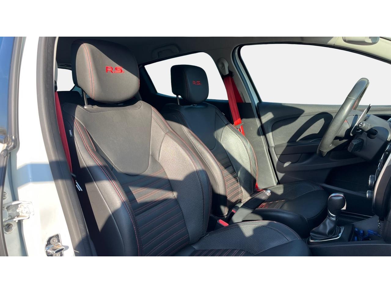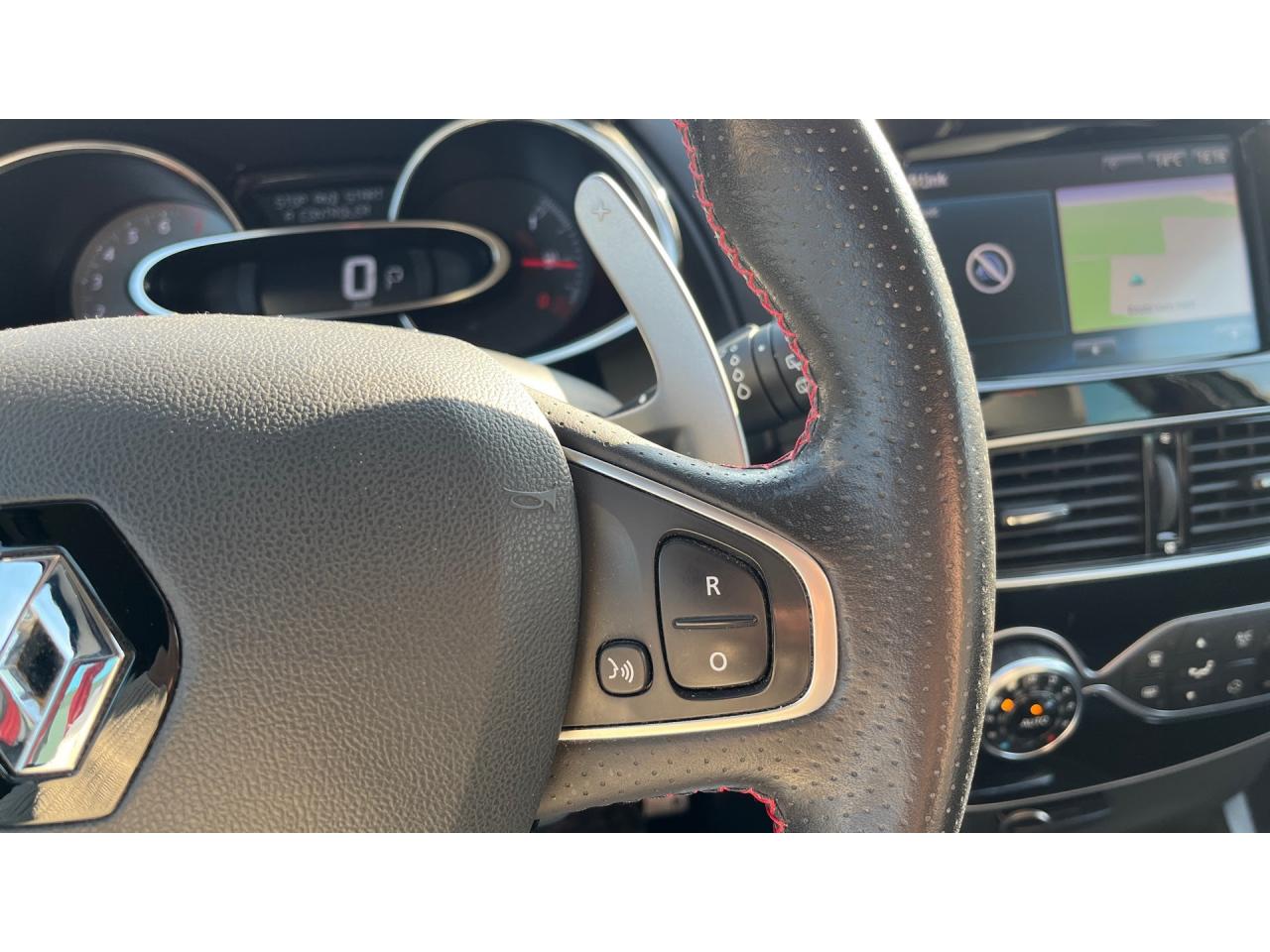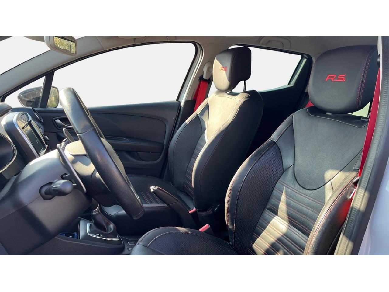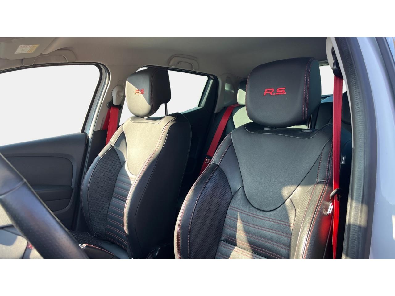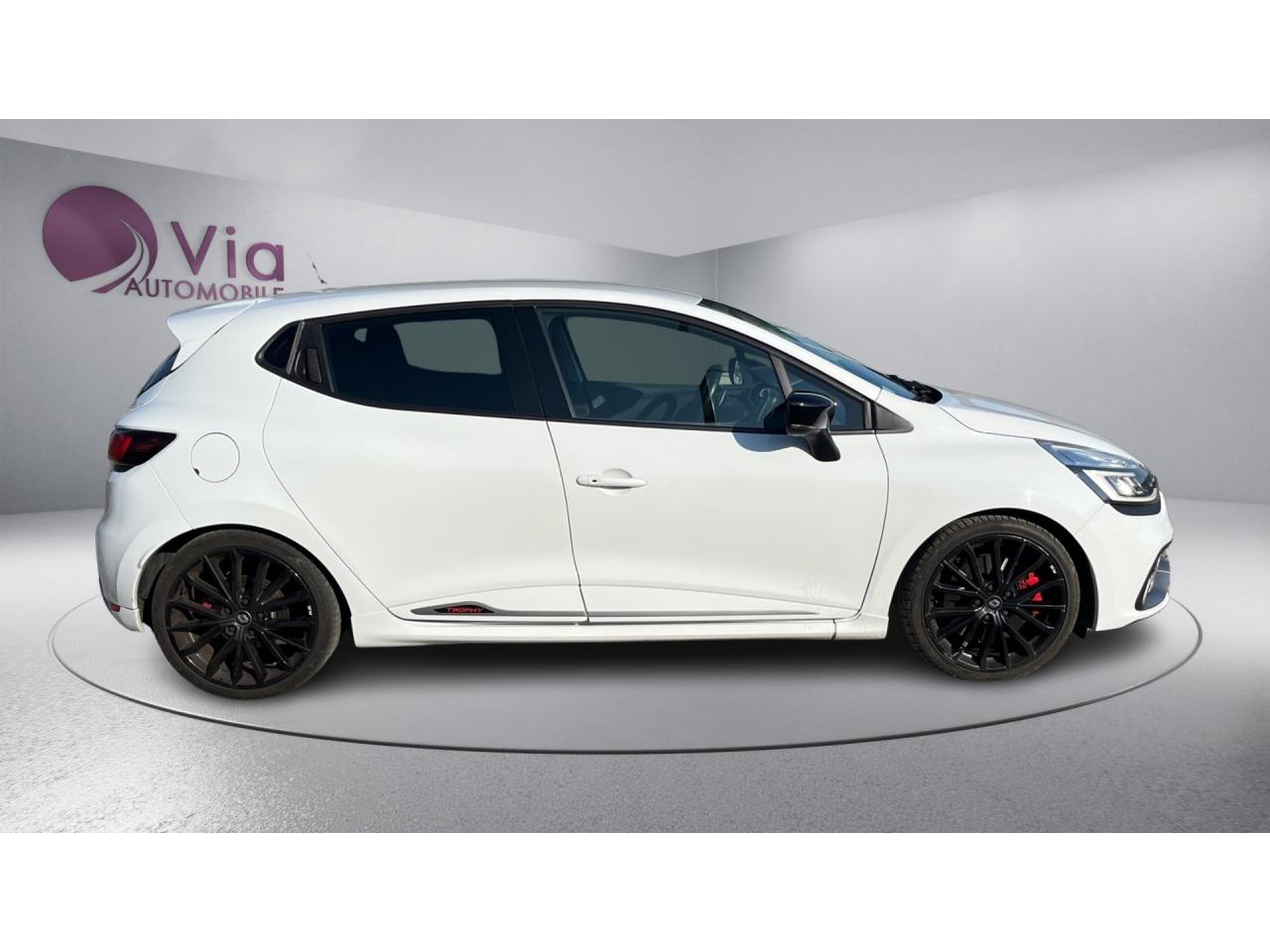 2 appuis-tête avant réglables en hauteur, avec marquage R.SABS avec aide au freinage d'urgenceAide au démarrage en côteAide au stationnement arrièreAirbags frontaux et latéraux conducteur et passager déconnectablesAlerte de ceinture de sécurité conducteur et passagerAnimation intérieure Renault Sport, harmonie Rouge (aérateurs, levier de vitesse, frein à main)Badging « R.S. renault sport » sur bas de hayon arrière droitBadging R.S. sous logo de face avantBaguettes de protection latérale : Ton caisseBanquette arrière rabattable 1/3-2/3 avec 3 appuis-tête réglables en hauteurBas de caisse spécifique (bavolets)Becquet Renault SportBoîte à gants fermable (volume 7 L)Bouclier ton caisse avec lame F1 dark métal brillantButées de compression hydrauliqueCarte Renault avec accès et démarrage mains-libres avec fermeture à l’éloignementCeintures de sécurité rougesChâssis TrophyClimatisation régulée avec filtre combiné pollen / charbon actifCondamnation automatique des ouvrants en roulantCoques de rétroviseurs noir grand brillantDétecteur de pluie et allumage automatique des projecteursDifférentiel électronique R.S. DiffDiffuseur arrière dark métal brillantDirection assistée électrique à assistance variableDouble canule d'échappement Carbone badgée AkrapovicEclairage additionnel LED R.S. Vision (fonction cornering, antibrouillard, longue portée et feux de position)Essuie-glace arrière avec déclenchement automatique en marche arrièreEssuie-vitre à cadencementEtriers de frein rougesFeux arrière avec signature lumineuse à LEDFond de compte-tours spécifique Renault SportHarmonie Carbone FoncéIndicateur de changement de vitessesInsert Rouge avec cerclage chromé et marquage R.S. sur volantJantes alliage 18’’ R.S. Noir BrillantJoncs de portières Dark MetalJupe de bouclier arrière noir Grand brillantKit gonflage de réparationLève-vitres avant et arrière électriques, impulsionnel côté conducteurLevier de vitesse avec fonction impulsionnelleLigne d’échappement AkrapovicMarquage « Renault Sport » sur bas de hayon arrière gaucheMarquage « Trophy » sur jonc de portièresMontants de pied milieu Noir Grand BrillantOrdinateur de bordPack R-Link EvolutionPalettes de passages de rapports au volant dark métalPare-soleil conducteur et passager avec miroir de courtoisiePatins de pédales et repose-pied en aluminiumPneumatiques perfo Michelin Pilot Super SportPoignée de frein à main en cuir avec surpiqûres RougePoignées de maintien passager avant et arrière rabattablesProjecteurs Full LED Pure Vision avec signature lumineuseProtections inférieures de portes ton caisseR.S. drive (3 modes : normal, sport, race)Rangement nomadeRégulateur et limiteur de vitesseRétroviseurs extérieurs électriques et dégivrantsRétroviseurs extérieurs noirs brillantsRétroviseurs rabattables électriquement et automatiquement avec répétiteur de clignotant à LEDSellerie cuir RS Carbonne foncéSeuil de porte aluminium avec marquage renault sportSiège conducteur réglable en hauteurSiège passager réglable en hauteurSièges avant chauffantsSystème de contrôle de trajectoire (ESP) et système antipatinage (ASR)Système de surveillance de pression des pneusSystème Isofix aux places latérales ARSystème Stop & StartVitres arrières surteintéesVolant cuir spécifique Renault Sport avec surpiqûres Rouge et repère Rouge du Point ZéroVolant réglable en hauteur et en profondeur