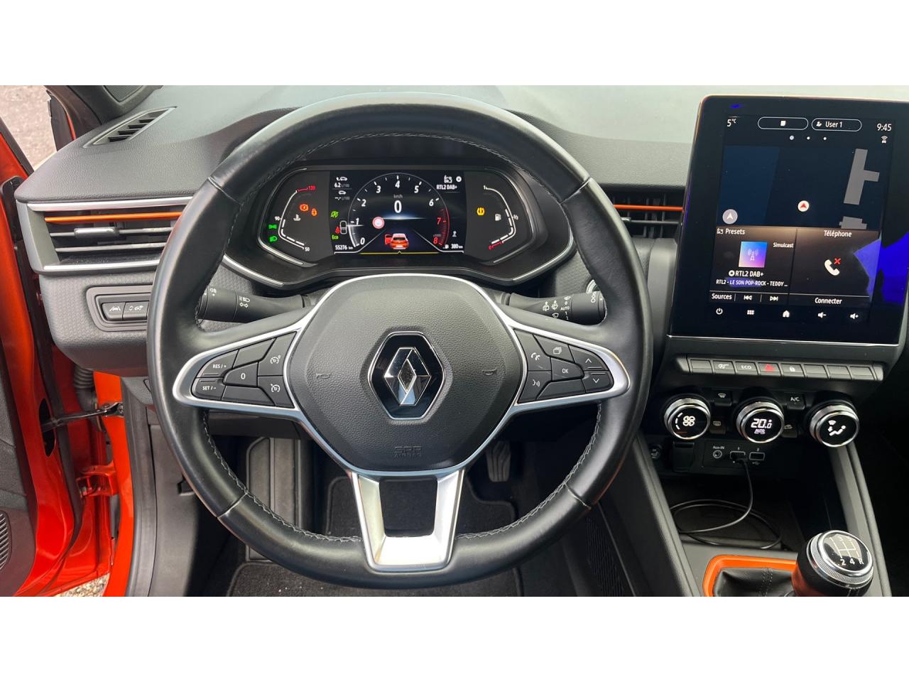 3 appuie-tête arrière réglables en hauteur6 haut-parleursABS avec aide au freinage d'urgenceAccoudoir avant, coulissant - avec rangement fermé de 2,2 lAérateurs latéraux chrome satinéAide au démarrage en côteAirbags frontaux et latéraux conducteur et passager avantAirbags rideaux avant et arrièreAlerte de perte de pression des pneusAlerte de survitesse avec reconnaissance des panneaux de signalisationAlerte distance de sécuritéAlerte oubli des ceintures de sécurité aux 5 places avec détection des occupantsAllumage automatique des projecteursAmbiance noire MosaicAntibrouillards avant à LED avec éclairage d'intersectionAppel d'Urgence Renault: appel automatique en cas d'accident ou bouton SOS pour appel (112) en cas d'urgenceAppuis-tête avant anti coup du lapinAssistance au maintien de voieAvertissement de sortie de voieBandeau supérieur des portes avant en matériau mousséBanquette arrière rabattable 40/60Boîte à gants fermée, éclairage et refroidissement, avec abattant à ouverture douce (8,4 l)Canule d'échappement chroméeCapteur de pluie avec essuie-glace automatiqueCarte Renault mains-libresCeinture de sécurité centrale arrière à 3 pointsCeintures de sécurité avant et arrière avec limiteurs d'effort et prétensionneurs (uniquement au places latérales pour l'AR)Ceintures de sécurité avant réglables en hauteurCerclage des antibrouillards avant finition chromeCiel de Pavillon grisClé 3 boutonsClimatisation automatiqueCoiffe de planche de bord en noir, avec matériau mousséCondamnation électrique centralisée des portes avec télécommande et condamnation des portes en roulantConsole centrale avant flottante, avec gainage en matériau softContrôle électronique de stabilité (ESC)Décors extérieurs ChromésDésactivation manuelle de l'airbag passagerDirection assistée électrique variableDouble microphone pour conversation téléphonique de qualitéEclairage d’ambiance : lumière personnalisable sur console centrale et accoudoir des portes avantEclairage diurne à LED avec signature en forme de C - intégré au projecteurs avantEclairage intelligent (commutation automatique feux de croisement/feux de route)Eclairage intérieur avant avec 2 liseuses LEDFeux arrière LED avec signature en forme de C et effet de profondeurFeux de stop à LEDFixation pour sièges enfants ISOFIX sur le siège passager avant et les sièges arrièreFrein de parking électrique avec fonction Auto-HoldFreinage actif d'urgence avec détection des piétons et cyclistesIndicateur de changement de vitessesInserts en chrome satiné sur le volant et l’embase de levier de vitesseKit de gonflageLève vitres électriques avant et arrière impulsionnelsLogo Renault chromé, avec bandeau supérieur de calandre Noir BrillantLunette arrière chauffanteMode EcoPack CityPare-soleil avec miroir de courtoisiePlafonnier avec deux liseusesPlancher de coffre mobilePoignées de porte avant couleur carrosseriePommeau de levier de vitesse et poignée de frein à main en cuirProjecteurs avant 100% à LED Performance éclairage Renault LED pure vision avec faisceau allongé et élargiProtections inférieures de porte avec signature CLIORégulateur et limiteur de vitesseRépétiteurs latéraux de clignotantsRétroviseur intérieur électrochromeRétroviseurs extérieurs couleur carrosserieSellerie "Intens doux" velours et cuir synthétique noir avec passepoil "Gris Vison"Service Auto-Update - 3 ans inclusServices de navigation connectée - 3 ans inclusSiège conducteur réglable en hauteurSièges confort, assise élargie et maintien latéral amélioréVéhicule connecté 4G avec pack de données inclus pendant 3 ansVitres arrière surteintéesVitres teintéesVolant cuirVolant multifonctions réglable en hauteur et en profondeur