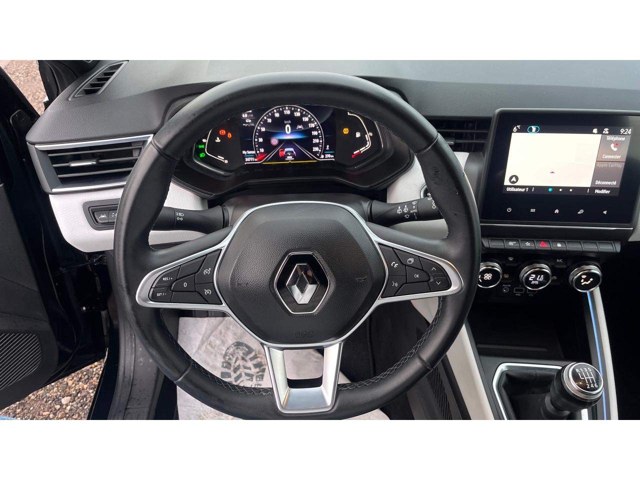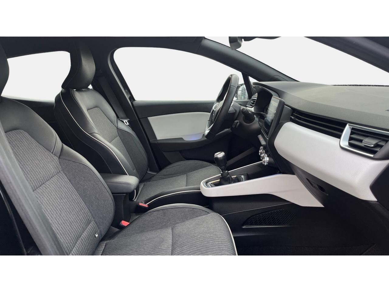 ABS avec aide au freinage d'urgenceAccoudoir avant, coulissant - avec rangement fermé de 2,2 lAérateurs latéraux chrome satinéAide au démarrage en côteAirbags frontaux et latéraux conducteur et passager avantAlerte de perte de pression des pneusAlerte de sortie de voie avec volant haptiqueAlerte de survitesse avec reconnaissance des panneaux de signalisationAlerte distance de sécuritéAlerte oubli des ceintures de sécurité aux 5 places avec détection des occupantsAllumage automatique des essuie-glacesAllumage automatique des projecteursAmbiance Gris clairAppel d'Urgence Renault: appel automatique en cas d'accident ou bouton SOS pour appel (112) en cas d'urgenceAppuis-têtes avant fin et 3 appuis-têtes arrière réglables en hauteurAssistance au maintien de voieBandeau supérieur des portes avant en matériau mousséBanquette arrière rabattable 40/60Boîte à gants ferméeCanule d'échappement chroméeCarte Renault, accès et démarrage « mains-libres »Ceinture centrale arrière 3 points, avec prétensionneurCeintures de sécurité AV et latérales AR à prétensionneurs et limiteurs d'effortCeintures de sécurité avant réglables en hauteurCiel de pavillon noir en maille 3DClimatisation automatiqueConsole centrale avant flottante, avec gainage en matériau softContrôle électronique de stabilité (ESC)Désactivation manuelle de l'airbag passagerEASY LINK 7” et navigationEclairage avant et arrière Full LED Pure Vision avec signature lumineuse en forme de « C »Eclairage d’ambiance : lumière personnalisable sur console centrale et accoudoir des portes avantEclairage intérieur avant et arrière avec 4 liseuses LEDFrein de parking électrique avec fonction Auto-HoldFreinage actif d’urgence, avec détection des voitures, motos, piétons, cyclistes (jour et nuit)Grille de calandre chroméeHarmonie intérieure noireIndicateur de changement de vitessesInserts en chrome satiné sur le volant et l’embase de levier de vitesseJantes alliage 16" Philia Diamantées GrisesJoncs chromés sur bandeau supérieur de calandreJoncs chromés sur protections inférieures de porteKit de gonflageLécheur de vitres latérales chromeLève vitres électriques avant et arrière impulsionnelsMode EcoPack CityPoignées de porte avant couleur carrosseriePommeau de levier de vitesses en cuirProtections inférieures de porte avec signature CLIORéception radio numérique (DAB+ et traditionnels FM/AM)Régulateur et limiteur de vitesseRenault MULTI-SENSE, personnalisation des modes de conduites et ambiance intérieures (3 mode pré-définis: MY SENSE, ECO, SPORT)Rétroviseur intérieur électrochromeRétroviseurs extérieurs couleur carrosserieSellerie "Intens doux" velours et cuir synthétique noir avec passepoil "Gris Vison"Service Auto-Update - 3 ans inclusServices de navigation connectée - 3 ans inclusSièges avant réglables en hauteurSièges confort, assise élargie et maintien latéral amélioréSystème Isofix aux places latérales arrière et passager avantTableau de bord avec écran numérique et personnalisable 7”Véhicule connecté 4G avec pack de données inclus pendant 3 ansVitres teintéesVolant multifonctions réglable en hauteur et en profondeurVolant TEP