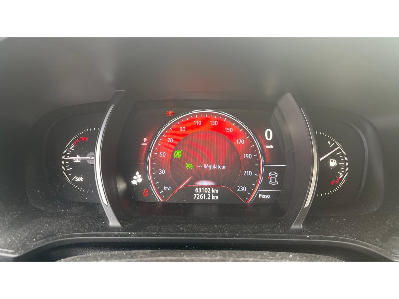ABS avec aide au freinage d'urgenceAide au démarrage en côteAide au stationnement arrièreAirbags frontaux conducteur et passager adaptatifs (airbag passager déconnectable)Airbags latéraux (thorax / bassin) avantAirbags rideaux de têtes aux places avant et arrièreAlerte de franchissement de ligneAlerte de survitesse avec reconnaissance des panneaux de signalisationAppuie-tête AV et AR réglables en hauteurBanquette arrière rabattable 1/3-2/3Boucliers arrière noir brillant en zone basseCanule d'échappement chroméeCapteur de toxicité avec recyclage d'airCarte Renault avec accès et démarrage mains-libres avec fermeture à l’éloignementClignotants à impulsionClimatisation automatique bi-zoneCommutation automatique des feux de croisement et de route, Light AssistCompteur digital TFT 7“ avec matrice couleurCondamnation automatique des ouvrants en roulantCondamnation centralisée des portesCondamnation des vitres électriques arrière au poste de conduiteConsole centrale avec accoudoir et compartiment de rangementContrôle dynamique de trajectoire (ESC)Détecteur de pluie et allumage automatique des projecteursEclairage d'ambiance sur la console centraleEclairage d‘ambiance sur les panneaux de portes avant et arrièreEclairage plafonnier avant et arrière à LEDFeux de jour à guide de lumière LED et effet 3DFeux de jour arrière LED 3D Edge LightFrein de parking assistéGrille de calandre noir brillant et chromeIndicateur de changement de vitessesInserts chromés de haut-parleurs avantJantes alliage 17“ Celsium noir diamantéKit de réparation des pneusLécheurs de vitres chromésLève vitres avant électriques à impulsionLève-vitres arrière électriques impulsionnelsMiroirs de courtoisie éclairés conducteur et passagerPack CityPack R-Link 2Pack SécuritéPoches aumônière au dos des sièges avantPoignées de porte avec jonc chroméPrise 12 V à l'arrièrePrise 12V à l'avantProgramme Eco-modeProjecteurs antibrouillardProjecteurs avant Full Led Pure VisionRégulateur et limiteur de vitesseRenault Multi-SenseRépétiteurs de clignotant à LED intégrés aux rétroviseursRétroviseur intérieur électrochromeRétroviseurs extérieurs couleur carrosserieRétroviseurs extérieurs électriques et dégivrantsSellerie mixte similicuir / velours noirSéquence d‘accueil à l‘approche du véhicule avec éclairage de signature lumineuse, éclairage de sol et de l'ambiance lumineuse intérieureSeuils de portes chromésSiège conducteur avec réglage lombaireSiège conducteur réglable en hauteurSiège passager réglable en hauteurSystème de coaching d‘éco-conduiteSystème de fixations ISOFIX aux 2 places latérales arrièreSystème de surveillance de pression des pneusVérins de capot moteurVitres latérales et lunette arrière surteintéesVolant Cuir NappaVolant réglable en hauteur et en profondeur